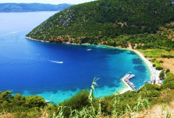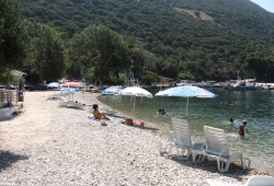Ithaca Beaches - Polis Beach in Ithaca, Greece is a picturesque pebble beach that offers a breathtaking backdrop of crystal-clear blue waters, set against a lush green bay. Situated just two kilometers from the charming community of Stavros, this beach is an ideal spot for relaxation and rejuvenation. Whether you want to bask in the sun on the sun loungers, enjoy refreshments at the well-equipped cafeteria, or take a refreshing shower, Polis Beach has got you covered. Additionally, you can rent a boat at the marina and explore Ithaca's surrounding tranquil beaches, making Polis Beach the perfect destination for a memorable beach vacation.