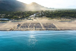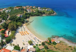 Stoupa Beaches - Kalogria Beach in Stoupa, Peloponnese is the epitome of liveliness and organization. This famous beach, located in Western Mani, Peloponnese, attracts both locals and tourists, particularly during the summer season and weekends. Its white sandy shores and crystal-clear, shallow waters make it the perfect destination for families with young children and young adults seeking entertainment. Kalogria Beach offers various amenities such as sunbeds, umbrellas, bars, restaurants, as well as beach volleyball courts, water sports and rentals for bicycles and canoes. However, what truly sets this beach apart is its stunning sunset, which can be observed while relaxing on the beach until late in the afternoon – one of the most beautiful in all of Greece.