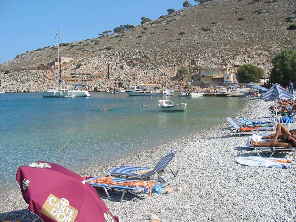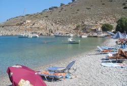 Symi Beaches - Marathounda Beach in Symi, Greece is a stunning destination on the island's southeast coast. As an organized beach, visitors can relax on comfortable sunbeds while soaking up the sun under the shade of umbrellas. The crystal clear waters of Marathounda Beach make it a perfect spot for snorkeling and exploring the vibrant underwater world. While the beach offers limited accommodation options, there is a charming tavern where you can enjoy delicious meals and refreshing drinks. Make sure to add Marathounda Beach in Symi, Greece to your must-visit list for a truly unforgettable vacation experience.