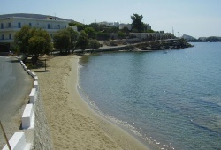 Syros Beaches - Located on the southern end of Syros, Greece, Possidonia Beach is a must-visit destination. This beautiful beach offers a range of tourist facilities, including comfortable accommodation options, cozy cafes, and inviting taverns that boast breathtaking views of the Aegean Sea and its small islets, such as Stroggylo and Schinonissi. The beach itself flaunts soft, sandy shores and crystal clear, blue waters. For those seeking a reprieve from the sun, several palm trees dot the shoreline, providing ample shade. To reach Possidonia Beach in Syros, visitors can take the bus from Ermoupolis Town.