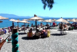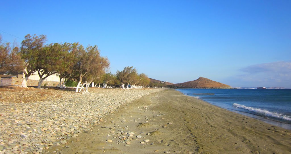 Tinos Beaches - Discover the stunning Agios Fokas Beach in Tinos, Greece - a picturesque beach that stretches along the entire town line, reaching Agios Sostis Beach. Boasting crystal-clear waters and a sandy seabed, Agios Fokas Beach is perfect for swimming. Enjoy the beach's many amenities including tourist facilities, a snack bar, and numerous restaurants. For added safety, there is a lifeguard tower onsite. Don't miss out on this must-visit destination in Tinos - experience the beauty of Agios Fokas Beach.