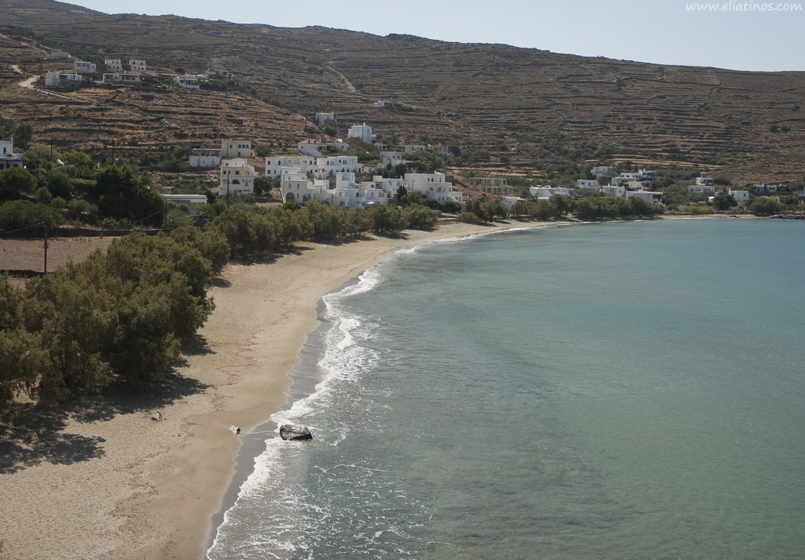 Tinos Beaches - Agios Romanos Beach in Tinos, Greece is a tranquil oasis located just 6 kilometers northwest of Tinos Town. With its long stretch of soft, sandy shoreline and crystal-clear blue waters, Agios Romanos beach is the perfect spot to unwind and soak up the sun. Shade-seekers will appreciate the many trees that line the beach, while foodies will love the traditional tavern nearby. If you're in search of a peaceful escape, Agios Romanos beach in Tinos is the ultimate destination.