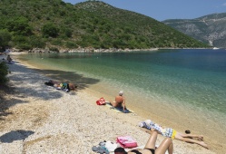 Ithaca Beaches - Minimata Beach, also known as Minimata (Messages), is a picturesque destination situated just two kilometres northeast of Vathy in the stunning Bay of Skinos on Ithaca Island, Greece. It is a top choice for those looking to soak up the beauty of the island's blue waters. While the beach is not equipped with amenities, its close proximity to the island's centre makes it a popular spot for visitors. It is recommended that you bring along your own supplies for your visit to Minimata Beach.