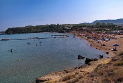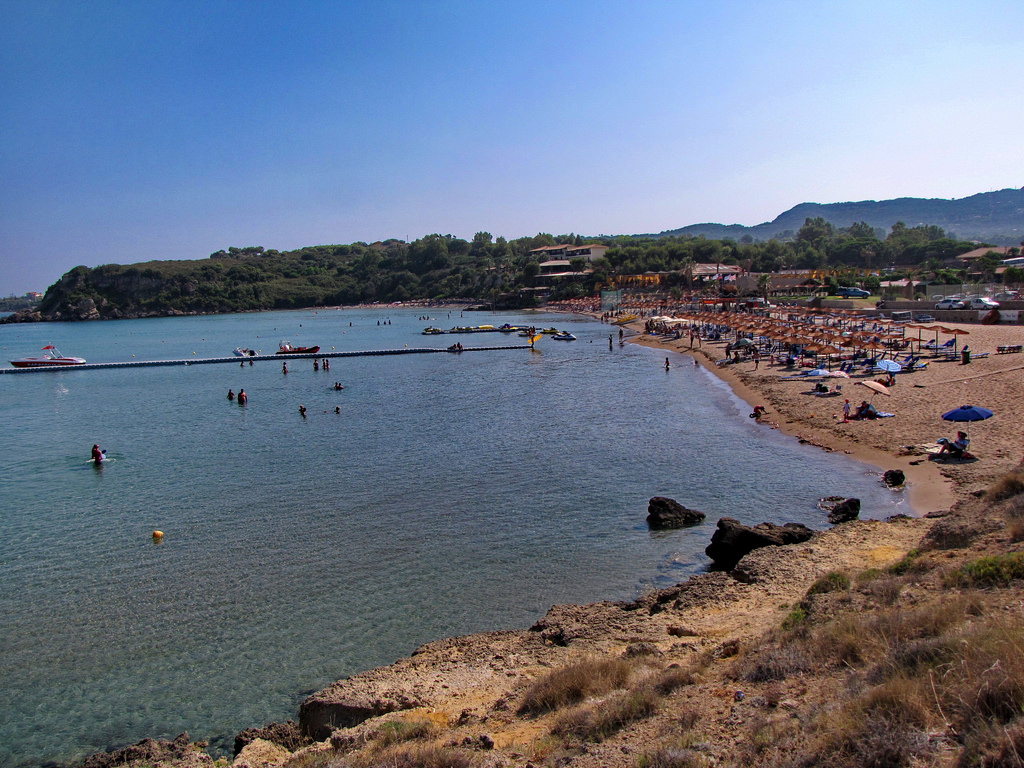 Zakynthos Beaches - Agios Nikolaos Beach in Zakynthos, Greece, is a must-visit destination located just 32 km northwest of Zakynthos Town. It draws its name from the charming little church situated on the left side of the beach. Visitors to Agios Nikolaos Beach in Zakynthos will revel in the wide range of activities on offer, including watersports and tourist facilities aplenty. While there are only a handful of taverns, a bar, sunbeds, and umbrellas available, there are also quieter spots on the right side of the beach for those looking to escape the crowds. Don't miss out on experiencing the beauty of Agios Nikolaos Beach in Zakynthos, Greece.