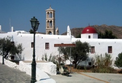 Located in the charming Ano Mera village, just 8km from Chora town, is the stunning Panagia Tourliani Monastery in Mykonos, Greece. This historic site was originally constructed in 1542 by two priests and was initially named after the Presentation of the Virgin Mary. After a restoration in 1767, the monastery was given its current name, inspired by an icon of the Virgin Mary found in the nearby area of Tourlos. Today, Panagia Tourliani is the patroness of the island, with a special celebration held in her honor every August 15th. The monastery boasts impressive whitewashed exteriors with a striking colored dome, while the church's interior is adorned with an awe-inspiring wooden iconostasis crafted in 1775 by Florentine artists. The altar screen features intricate depictions of apostles, saints, and scenes from the New Testament and is adorned with golden flowers, creating a truly mesmerizing sight. Don't miss the beautiful marble fountain located in the yard outside the church. Visit Panagia Tourliani Monastery and experience the rich history and stunning architecture of this iconic Mykonos landmark.
