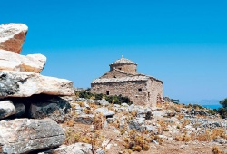 Naxos Churches & Monasteries - The Agia Kyriaki Church in Naxos, Greece is a significant Byzantine monument in the Balkan region. Dating back to the 9th century Iconoclastic period, this church is located just 3 kilometers from Apiranthos on Naxos. Visitors will be captivated by the spate of frescoes adorning the church, including a standout work featuring birds with ribbons on their necks on the altar's arch. Make sure to add the Agia Kyriaki Church in Naxos to your itinerary for a glimpse into a rich historical and cultural heritage.