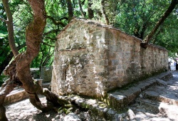 Arcadia Churches & Monasteries - The Agia Theodora Church in Arcadia, Peloponnese is a beautiful Byzantine church situated close to Vasta village in Megalopolis. One of the unique features of this church is the stunning sight of seventeen colossal trees that have grown on its roof. Additionally, a refreshing spring emanates from its base, adding to its charm. Legend has it that the Agia Theodora church was constructed on the very spot where St. Theodora was tortured and martyred. She uttered her last words, "My body should be a church, my blood water, and my hair trees." This church holds a significant place in Greek Orthodox Christianity and is a must-visit destination for tourists and pilgrims alike.