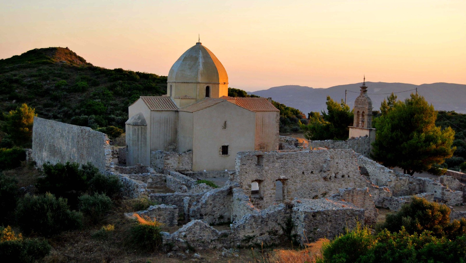 Zakynthos Churches - The beautiful Panagia Skopiotissa Monastery in Zakynthos, Greece was built in the 15th century in honor of the Holy Mother on the Skopos mountain. Its stunning location amidst nature offers breathtaking views of the entire island. The Venetians admired the picturesque landscape and called it Belvedere. This Byzantine-style monastery was constructed on the remains of an ancient temple dedicated to Artemis. The only drawback is the lack of signage for the road leading to the church, and the last leg of the journey is unpaved. Come and visit the Panagia Skopiotissa Monastery for a peaceful and spiritual experience in the heart of Zakynthos, Greece.