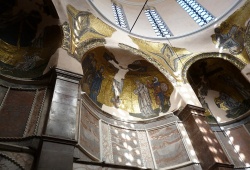 Chios Churches & Monasteries - Nea Moni in Chios, Greece is a must-visit destination for history buffs. Built during the 11th century by the Byzantine Emperor Constantine IX, this monastery is one of the oldest in Chios. Boasting a large area, Nea Moni was once home to 800 monks and was incredibly wealthy. However, after the 17th century, the monastery's fortunes declined, and it was not the same after the Ottomans destroyed Chios in 1822. Today, only three monks live in the complex, which includes the catholicon, cells, a dining room, and a small chapel to Saint Luke surrounded by walls. While Nea Moni has decreased in size over the centuries, its historical significance remains. Visitors can admire the centuries-old frescoes that adorn the walls of the church. Don't miss your chance to experience the rich history of Nea Moni in Chios, Greece.
