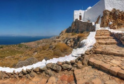Patmos Churches - The Prophet Elias Church in Patmos, Greece is a must-visit site located at the island's highest point. This majestic church is situated south of Chora in the western region and was built by a monk back in 1764 at a staggering height of 270 metres above sea level. Apart from its historical and religious significance, the church's strategic location offers a breathtaking panoramic view of Turkey, Lipsi, and Leros. Don't miss out on this amazing destination while exploring the beautiful island of Patmos, Greece.