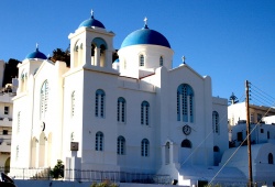 Ios Churches & Monasteries - The Cathedral Church Evangelismos is the pride and centerpiece of Hora, with its awe-inspiring beauty and spiritual significance. As the Cathedral Church in Ios, Greece, it stands tall and majestic, painted in the quintessential Cycladic colours of blue and white. The interior of this magnificent structure is adorned with intricate and exquisite decorations and fine icons, making it a must-see destination for tourists and pilgrims alike.