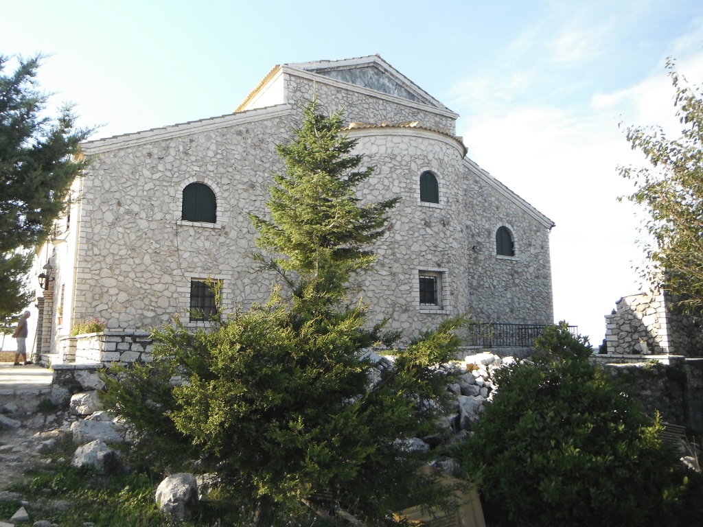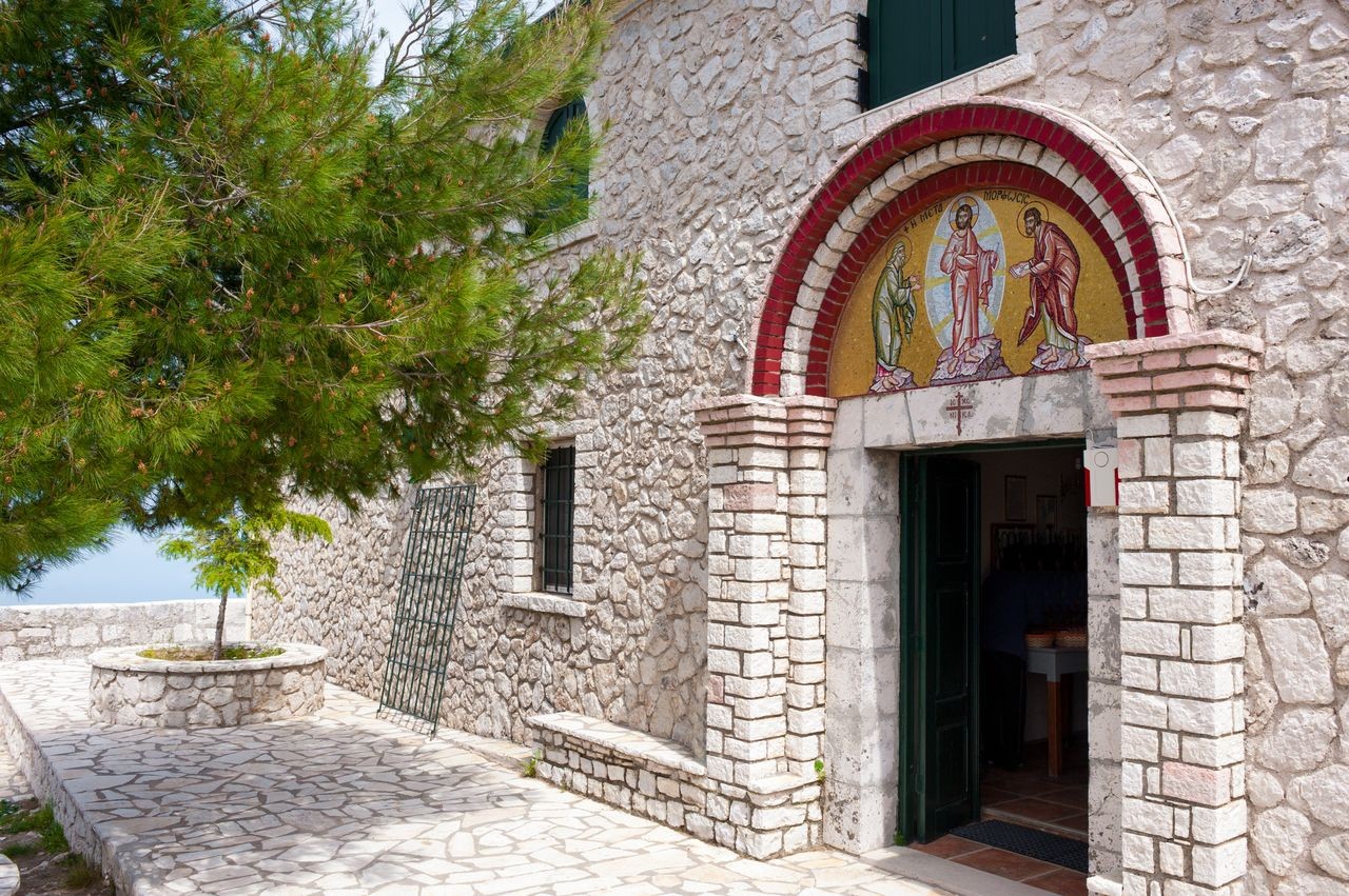 Corfu Churches - The Pantokrator Monastery in Corfu, Greece is a historic landmark situated on a mountain north of Corfu. Originally constructed in 1347, the monastery was unfortunately destroyed in 1537. However, a new church was erected on the same site in 1689, with a striking new facade added during the 19th century. Visitors to the Pantokrator Monastery are treated to breathtaking views of the entire island from its elevated position. This landmark is particularly noteworthy for being dedicated to the transfiguration of Christ.