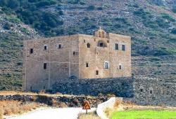 Naxos Churches & Monasteries - The Monastery of Fotodotis in Naxos, Greece is a stunning fortress-like structure situated at an elevation of 500m with unparalleled views of the sea and Donoussa Island. Its name, meaning "Christ who gives the light," is a testament to its significance as a place of worship. This historic landmark dates back to the 6th century AD when it was built by a Byzantine princess who had been saved by the sea in the region. In the 16th century AD, the monastery underwent renovations that transformed the three-aisled basilica into a magnificent domed church. The addition of fortification walls further enhanced its grandeur and contributed to its present form. Visitors to the interior of the church are greeted by breathtaking frescoes from the medieval era. The monastery's yard is adorned with a large plane tree and surrounded by oak, fig, and vineyards. The Monastery of Fotodotis is a popular pilgrimage site and celebrates on August 6th, attracting many devotees from nearby villages like Danakos and Filoti. Experience the spiritual and architectural magnificence of the Monastery of Fotodotis on your next visit to Naxos, Greece.
