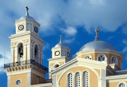 Kalamata Churches - Ypapanti Church in Kalamata, Peloponnese is a magnificent cathedral built in 1839 and inaugurated in 1879. As the Virgin Mary is the patron saint of Kalamata, it's a major celebration and local holiday when the Holy Icon of the Virgin Mary (Ypapanti) is celebrated every February 2nd. The icon, which is said to date back to 672 AD, is located in the Byzantine-style church and was found in stables during Ottoman rule after one of the city's noblemen saw it in a vision. Even though the back of the icon has been burned, the front is still intact, and it's believed to have miraculous powers. The church was named in honor of the icon and an ancient temple that had previously stood on the same site. After the liberation of Greece, the small church was replaced with the new Ypapanti Church in 1873, and since then, it has been the Metropolitan Church of Kalamata. The holy icon is revered not only by the locals but by Greeks throughout the country due to the numerous miracles attributed to it, including saving the people of Kalamata from certain death. Visit Ypapanti Church in Kalamata, Peloponnese, and experience the powerful history and spirituality that surrounds it.