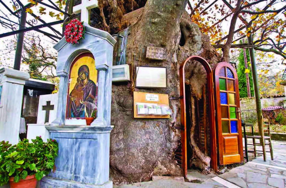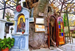 Kalavryta Churches - The Panagia Plataniotissa Church, nestled inside a plane tree, is a must-visit destination for those traveling from Kalavryta to Aigio via Pteri in Peloponnese. Locals consider the church's location in the tree a wonder, and it can accommodate up to 20 people. If you're interested in marveling at the Panagia Plataniotissa Church in all its glory, it's conveniently located just 30km from Kalavryta. Discover the natural twist this unique church offers and visit today.