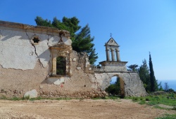 Kefalonia Churches & Monasteries - The Sissia Monastery in Kefalonia, Greece is a historic site located on a hill overlooking Lourdas Beach. It is said to have been founded in the 13th century by Saint Francis of Assisi, known as the Catholic patron saint of animals and nature, which may explain the name of the monastery. Once a prosperous establishment with impressive frescoes and icons created by renowned artists, the Venetians established an annual march from Sissia to the Castle of Saint George in Peratata, Kefalonia, to celebrate the feast of Saint Mark. Although the monastery shifted from Catholic to Orthodox over time, it remained an important religious institution until it was devastated by an earthquake in 1953. Today, visitors can see the ruins of the original monastery and explore the newly constructed building nearby. Come experience the rich history and stunning views of the Sissia Monastery in Kefalonia, Greece.