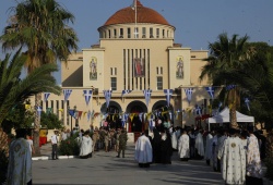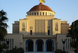 Korinthos Churches & Monasteries - The Agios Pavlos Church in Korinthos, Peloponnese is a significant religious site dedicated to St. Paul, who brought the message of the Gospel to Korinthos and wrote his renowned letters to the citizens. Despite being damaged by earthquakes in 1858 and 1928, the church was reconstructed and boasts impressive Byzantine architecture with thick walls and a towering bell tower, making it the tallest building in the city. The interior is adorned with exquisite frescoes by D. Soukara, a magnificent marble icon screen, ornate wooden gates, and a grand pontifical throne. Visitors are welcomed with a heartwarming excerpt on love from Paul’s First Epistle to the Korinthians at the entrance. Plan your visit to the Agios Pavlos Church in Korinthos, Peloponnese and marvel at its rich history and stunning architecture.