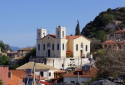 Kyparissia Churches & Monasteries - The church of the Holy Trinity (Agia Triada) is located in the old town of Kyparissia in the Peloponnese. The church is dedicated to the Holy Spirit, the saint protector of the town, and celebrates every year 40 days after Easter. On the day of the Holy Spirit, there is a three-day festival taking place in the upper town of Kyparissia with live music, dancing, and a feast right in front of the church of Holy Trinity. This church was built on the ruins of an ancient temple, and its location offers an amazing view of the sea.