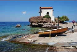 The Panagia Gorgona Church in Lesvos, Greece is a delightful and picturesque place of worship found at Skala Sikamnias harbor. Positioned atop a small rock formation that overlooks the sea, visitors are treated to stunning views of the surrounding waters. This charming church, also known as Virgin the Mermaid, is revered as the guardian of Lesvos' fishermen, making it an important cultural landmark.