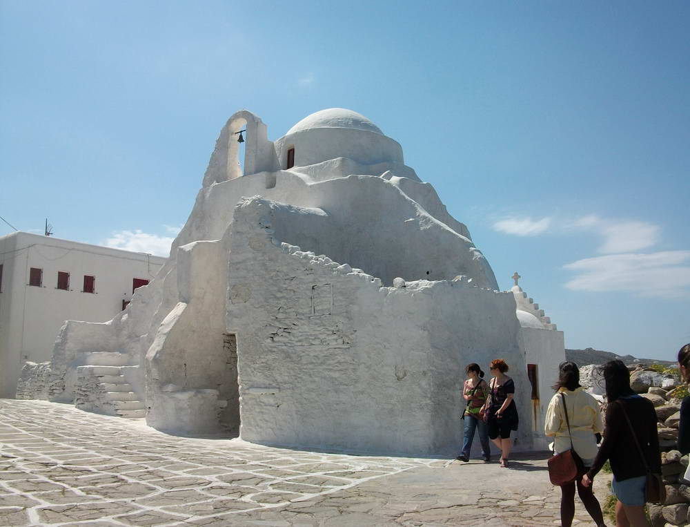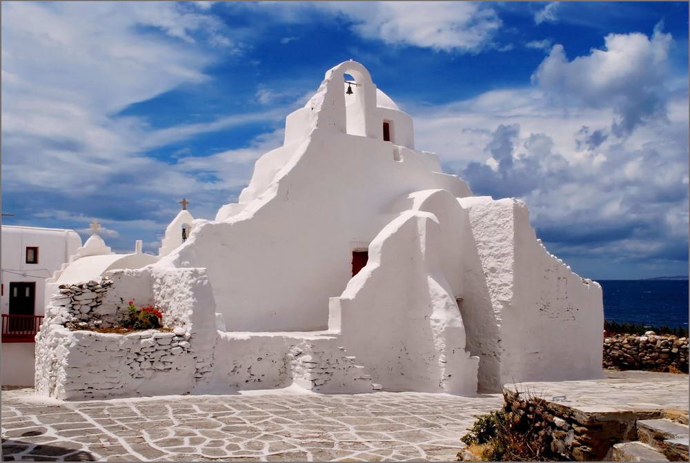 Mykonos Churches - The Panagia Paraportiani Church in Mykonos, Greece is an iconic destination for photographers from around the world. Situated at the entrance of the Kastro neighbourhood and overlooking the sea, this church is steeped in history. In fact, its name derives from the Greek term meaning "standing next to the entrance door," as it was originally built next to the castle door. What makes this church unique is that it is actually a complex of five small churches, one built on top of the other. At the centre of the complex is the Church of Agios Efstathios, which is surrounded by the churches of Agios Anargyros, Agios Sozon, and Agia Anastasia. At the top of this complex is the Church of the Virgin Mary, which appears dome-shaped. These five churches were not constructed at once but were gradually built over the centuries. The oldest of these is the Agios Anargyros church, which dates back to the late 14th century. The other churches were built in the 16th and 17th centuries, and renovations continued until 1920. Experience the wonder and beauty of the Panagia Paraportiani Church in Mykonos, Greece, and capture stunning photographs to treasure forever.