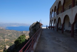 Lasithi Churches & Monasteries - The Faneromeni Monastery in Lasithi, Crete is a must-see for any visitor to the area. This male monastery is situated on a steep slope at an altitude of 540 metres, offering breathtaking views of the sea. It is dedicated to the Virgin Mary and Zoodohos Pigi, and the church is built inside a cave with two aisles. The monastery is a popular destination, drawing pilgrims from all over Crete, especially on August 15 when it is celebrated.