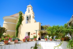 Corfu Churches & Monasteries - The Paleokastritsa Monastery in Corfu, Greece is a stunning Byzantine monastery dedicated to Panagia (Virgin Mary) of Paleokastritsa. Located on a hill overlooking the beautiful Paleokastritsa beach, this popular attraction offers breathtaking views of the island and sea. Dating back to 1228, the monastery boasts a small ecclesiastical museum featuring rare Byzantine icons, holy books, and other relics. The journey to the Paleokastritsa Monastery is equally mesmerizing, with a road passing through a dense forest of olive trees and cypresses. Don't miss the chance to explore this historical and religious gem during your visit to Corfu, Greece.