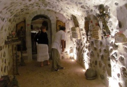 Moni Keras Kardiotissas is one of the many Orthodox monasteries in Crete. While its exact date of founding remains unknown, its origins can be traced back to the 10th–11th centuries when the first signs of its existence appeared on the slopes of Dikti. The monastery is named after its capital icons, Panagias Tis Kardias, which translates to "from the heart of the Virgin Mary." Originally established as a male monastery, the constant conflict during the Turkish occupation of Crete caused a decline in the male population, resulting in Kardiotissa Kera becoming a nunnery. Nestled amidst the gorges and cliffs on the Lasithi Plateau, this peaceful monastery offers a magnificent view of the plain of Lagada from its walls. Experience the tranquil beauty of Moni Keras Kardiotissas on your next visit to Crete.