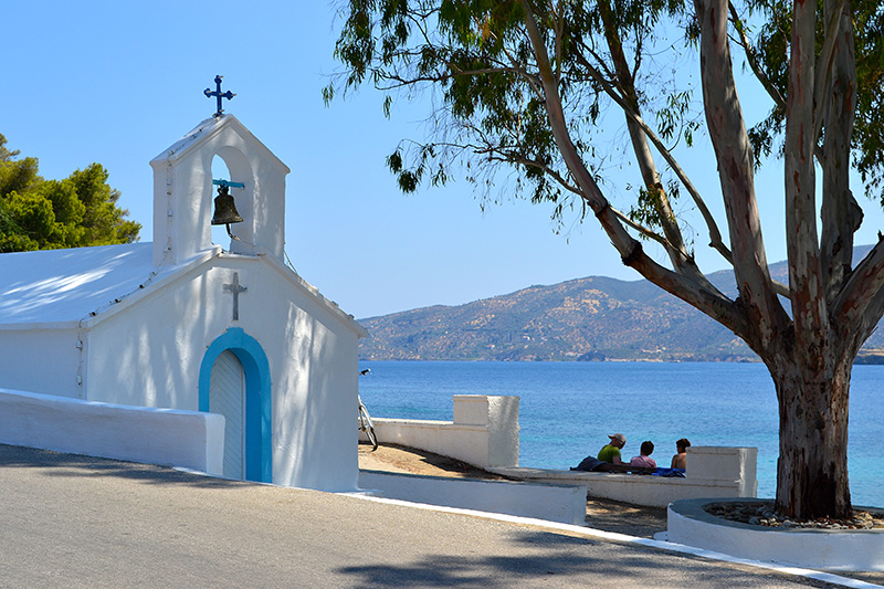 Poros Churches - Nestled on the picturesque island of Poros in Greece, stands the beautiful Panagitsa Chapel. The chapel's white-washed walls gleam brilliantly in the Mediterranean sunlight and its blue-domed roof is a stunning contrast against the clear blue sky. Visitors can hear the gentle lapping of the waves against the shore as they approach the entrance, where they are welcomed by intricate stonework and beautiful frescoes inside. The Panagitsa Chapel is a true gem of Greek architecture and a must-visit for anyone traveling to Poros.