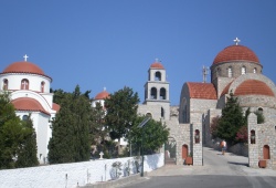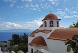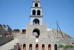 Kalymnos Churches & Monasteries - Agios Savvas Monastery in Kalymnos, Greece, is a stunning stone church dedicated to the island's patron saint. Perched atop a hill above Pothia Town, the capital of Kalymnos, this beautiful monastery boasts a striking red tile roof and breathtaking views of the town, port, and sea. Nestled nearby is the equally impressive Agioi Pantes monastery. For a truly unforgettable experience in Kalymnos, be sure to visit Agios Savvas Monastery.