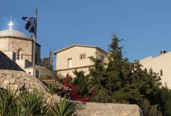 Ssntorini Chuches & Monasteries - Located between Pyrgos and Kamari on the island of Santorini in Greece is the Monastery of Profiti Ilias. This historical site sits atop the highest point of the island, Prophet Elijah mountain, which reaches 567 meters. Not only will you enjoy stunning views of the patchwork agricultural plains and the hilltop village of Oia, but you'll also be able to explore the monastery itself. Built in 1712, the walls surrounding the Monastery of Profiti Iliain resemble a fortress and are steeped in significant history. The monastery once had its own ship, conducting private business and serving as an active influence on the intellectual and patriotic life of Santorini. From 1806 to 1845, it even ran a school teaching Greek language and literature. Although the monastery's decline began in 1860 and suffered damage from earthquakes in 1956, today, it boasts an impressive collection of Greek Orthodox religious artifacts, icons, bibles, books, and ethnographic material. It also features exhibits on shoemaking, printing, candle making, wine making, and local cuisine. Discover the Monastery of Profiti Ilias in Santorini, Greece, for a truly enriching experience.
