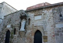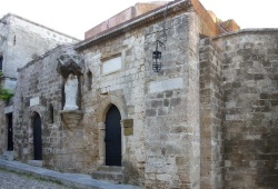 Rhodes Churches & Monasteries - The Church of Holy Trinity in Rhodes, Greece, is a remarkable cross-shaped church with a cupola. The structure's northern arm is shorter and leads to an adjacent rib vault. Its captivating frescoes are thought to belong to the late 15th and early 16th centuries. Sadly, during the Ottoman occupation, this holy site was transformed into a mosque, known as Dolapli Mescit, which resulted in necessary modifications. The church also has an intriguing past, as recent excavations uncovered parts of an ancient Hellenistic road and four tombs. Tragically, the Holy Trinity Church suffered significant damage during air raids in World War II. However, after 1980, the Greek Archaeological Service carefully restored this sacred place.