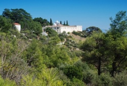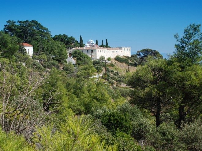 Samos Churches & Monasteries - Zoodohos Pigi Monastery in Samos, Greece, is an awe-inspiring historic landmark. Positioned on the northeast side of Samos town, the monastery was constructed in 1756 by a monk who used the original foundations of a small church. Perched at an altitude of 400 metres, Zoodohos Pigi Monastery provides breathtaking panoramic views. The temple doors are made up of tiny wooden elements, representing each day of the year. Easter Sunday is a significant celebration at the monastery, dedicated to the venerated saint. Discover the charm and spirituality of Zoodohos Pigi Monastery in Samos, Greece.