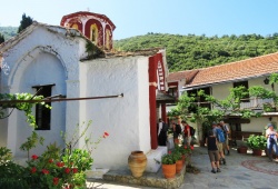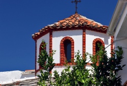 Skopelos Churches & Monasteries - The Evangelistria Monastery in Skopelos, Greece is a must-see for history buffs and architecture enthusiasts. Situated just 3.5 km east of Skopelos Town, this post-Byzantine monument is steeped in history. Originally constructed in 1712, the monastery underwent significant renovations in the mid-18th century courtesy of the esteemed Daponte family. Its fortress-like architecture is a sight to behold, as is the stunning 18th-century wooden-carved iconostasis created in a Constantinople workshop. The monastery boasts an impressive collection of Byzantine and post-Byzantine icons. Climb the slopes of Mount Palouki to take in breathtaking views of Skopelos Town and the Aegean Sea from this magnificent hillside monastery. Plan your visit to the Evangelistria Monastery in Skopelos, Greece today.