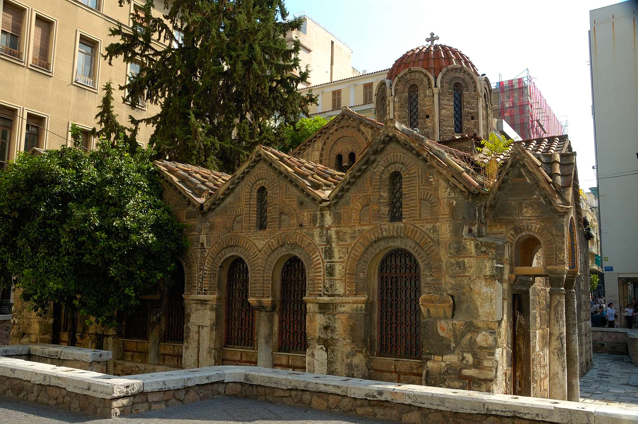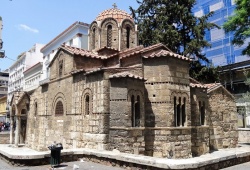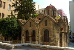 Athens Churches - Panagia Kapnikarea Church in Athens, Greece is one of the oldest and most significant religious sites in Athens. Constructed around 1050, the church was built on the former location of an ancient temple dedicated to either Athena or Demeter. This is a common practice for early Christian churches. Situated in the bustling and popular Ermou street, which connects Syntagma to Monastiraki Square, Panagia Kapnikarea is an iconic Athenian landmark. The church is devoted to Panagia, or the Virgin Mary, and is named "Kapnikarea" because of the marks of fire on its structure, deriving from the Greek word "kapnismeni" meaning smoked.