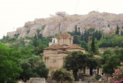 Athens Churches - The Holy Apostles Church in Athens, Greece is located on the western side of the Ancient Agora of Athens and was constructed in the mid-10th century. This church is of great significance as it is the only monument, aside from the Temple of Hephaestus, that has remained undamaged since its foundation. It is noteworthy for its unique architecture which marks the beginning of the "Athenian type," combining the simple four-pier with the cross-in-square forms. The altar and floor are made of marble and the floor plan features a cross with apses on four sides, supported by four columns that uphold the dome. Many noteworthy wall paintings from the 17th century have been preserved within the walls of this church.