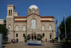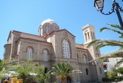 Korinthia Churches - Agios Vlasios Church in Xylokastro, Peloponnese, stands tall and proud in the central square of the town. This magnificent temple was built in the late 19th century on the ruins of an older church with the same name, following the pattern of the Metropolitan Church of Athens. Its imposing columns, eight-sided dome, and cylindrical roofs, all symmetrically proportioned, give an impression of grandeur and magnificence. The church of Agios Vlasios was inaugurated in 1908 by the Metropolitan Bishop of Corinth, Vartholomaios Gheorghiadis. The floor, iconostasis, and ambon were designed by renowned archeologists and architects Anastassios Orlandos and Efstathios Stikas. The captivating icon paintings inside the church were created by Spyros Vassileiou and Aginoras Asteriadis. The town's patron saint is celebrated every year on February 11th in this beautiful church. Visit Agios Vlasios Church in Xylokastro, Peloponnese, and witness its splendor for yourself.