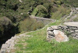 Andros Gorges - Dipotamata Gorge in Andros, Greece is a stunning natural wonder that spans over 7 kilometers, nestled between the charming settlements of Syneti, Paleokastro, and Kochylou. As you explore the gorge, you will be surrounded by dense vegetation and a plethora of extraordinary animals and birds. Even during times of drought, the water flows ceaselessly through the gorge. This natural environment has been well-preserved as the paved path that once served as a primary network has remained unused for the last 60 years. Along the way, you will come across an arched stone bridge where the path meets the river. In addition to the paths, you will also witness the ruins of historic stone walls, watermills, outbuildings, pens, huts, and threshing floors. The watermills are the most significant structures in the area, with only 22 remaining mills preserved, abandoned, or ruined across the gorge. Come and experience the wonder of Dipotamata Gorge in Andros, Greece.