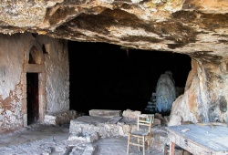 Chania Caves - The Cave of the Bear, also known as the Virgin Mary Arkoudiotissa, is a sacred site in Chania, Crete. Located on the path from Gouverneto to Gatholiko, this cave houses a chapel dedicated to the Virgin Mary. As you approach the entrance, you'll see a grey stalagmite shaped like a bear and a small pond. Archaeologists believe that in ancient times, the cave was a sanctuary for the goddess Artemis, who was said to have transformed into a bear. Inside the cave, you'll find inscriptions and reliefs of Apollo and Artemis. Today, the cave is an old riverbed with a large hall adorned with ancient relics that have been blackened by fire. Beyond the hall is a smaller chamber that can be accessed through a narrow passage. While its width may be too small to explore further, the Cave of the Bear remains a must-see destination for visitors to Crete.