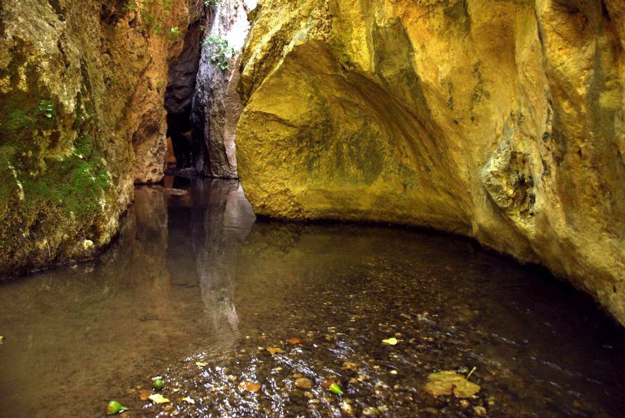 Heraklion Gorges - Discover the natural beauty of Veneratou Gorge in Heraklion, Crete. This stunning 500-meter-long gorge is nestled between Venerato and the Paliani Monastery, just 17 kilometers from Heraklion. The entrance to the gorge is conveniently located near Avgeniki, while the small church of Agios Fanourios in Venerato marks its end. The lush plantations thrive thanks to the river that runs through the gorge. While the narrowest point is just 60 centimeters wide, the gorge itself reaches impressive heights of 25 meters. Embark on an adventure through this awe-inspiring Cretan gorge, but be prepared for challenging terrain at times.