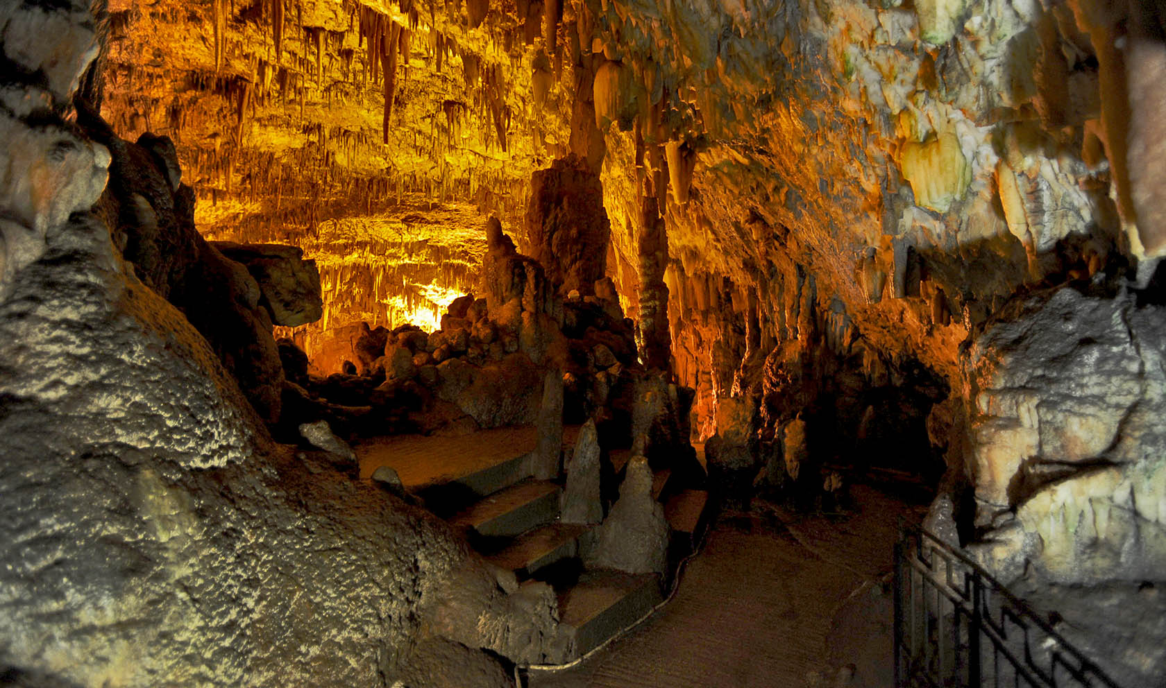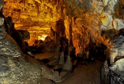 Kefalonia Caves - The Drogarati Cave in Kefalonia, Greece was formed nearly 300 years ago after a powerful earthquake caused a part of the cave to collapse, creating its current entrance. Located 3 kilometres from Sami and standing at an altitude of 120 metres, this cave has a depth of 95 m and a temperature of 18°C (64.4°F). It is considered one of the best caves in Greece and is famous for its large room, making it ideal for cave therapy.