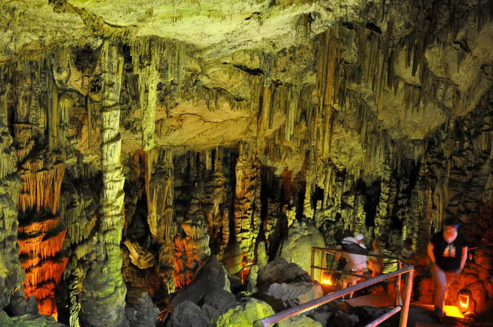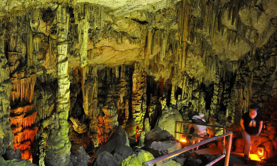 Boasting a surface area larger than 3,400 m2, Sfedoni Cave is adorned with stunning stalagmites and stalactites that form an array of unique shapes and sizes. These formations include grand pillars that appear to have been crafted by master architects, as well as delicate, human-shaped sculptures that have developed over time. Additionally, the cave is home to magnificent glyphic walls that showcase the natural beauty of the area.