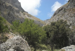Asfendou Gorge in Sfakia, Chania Crete is a must-visit destination for hiking enthusiasts. This picturesque gorge is situated in the province of Sfakia and starts from the deserted hamlet of Asfendou, which is currently home to local sheep herders. The trail runs parallel to the streambed and is passable but steep. As you hike, you'll be treated to breathtaking views of the Libyan sea in many places. Though the vegetation here is not as dense as in other canyons in the province, you'll encounter the Cave of the Shepherd and the Wall-Painted Cavernous Church of St. Anthony, which is situated just before reaching the deserted village of Kolokasia. This village is a fine example of authentic traditional Cretan architecture, with arches dividing the houses into four parts. Don't forget to visit the two surviving chapels of St. George and Virgin Mary while you're there!