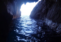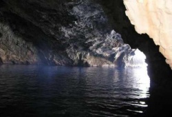 Skyros Caves - The Diatripti Cave in Skyros, Greece, is a must-see attraction for visitors to the southeast cliffs. The stunning colors of the water inside the cave are spellbinding, as the sun's rays create a special effect. You can even enter the cave by boat and be awed by its internal beauty, including the breathtaking stalactites and green sea bottom. With two openings, the Diatripti Cave is easily accessible by low boat. Don't miss out on the chance to explore the Diatripti Cave and be amazed by the gorgeous scenery along the entire route.