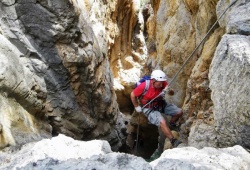 The Tsoutsouros Gorge in Tsoutsouros, Crete, is a stunning canyon that is perfect for beginners looking for a thrilling adventure. With a length of just over 1.5 km, the gorge starts in the village of Tsoutsouros and is only accessible with special climbing equipment. One of the largest runs in the gorge is about 30 metres, but the most extreme and picturesque spots are located at the exit of the gorge. In the winter, Tsoutsouros Gorge is filled with water, adding to the excitement. Just west of the gorge is a smaller canyon called Trulli, also known as Little Tsoutsouros of Crete. This hidden gem has become a popular spot for avid canyon fans. Experience the beauty and thrill of the Tsoutsouros Gorge in Tsoutsouros, Crete.