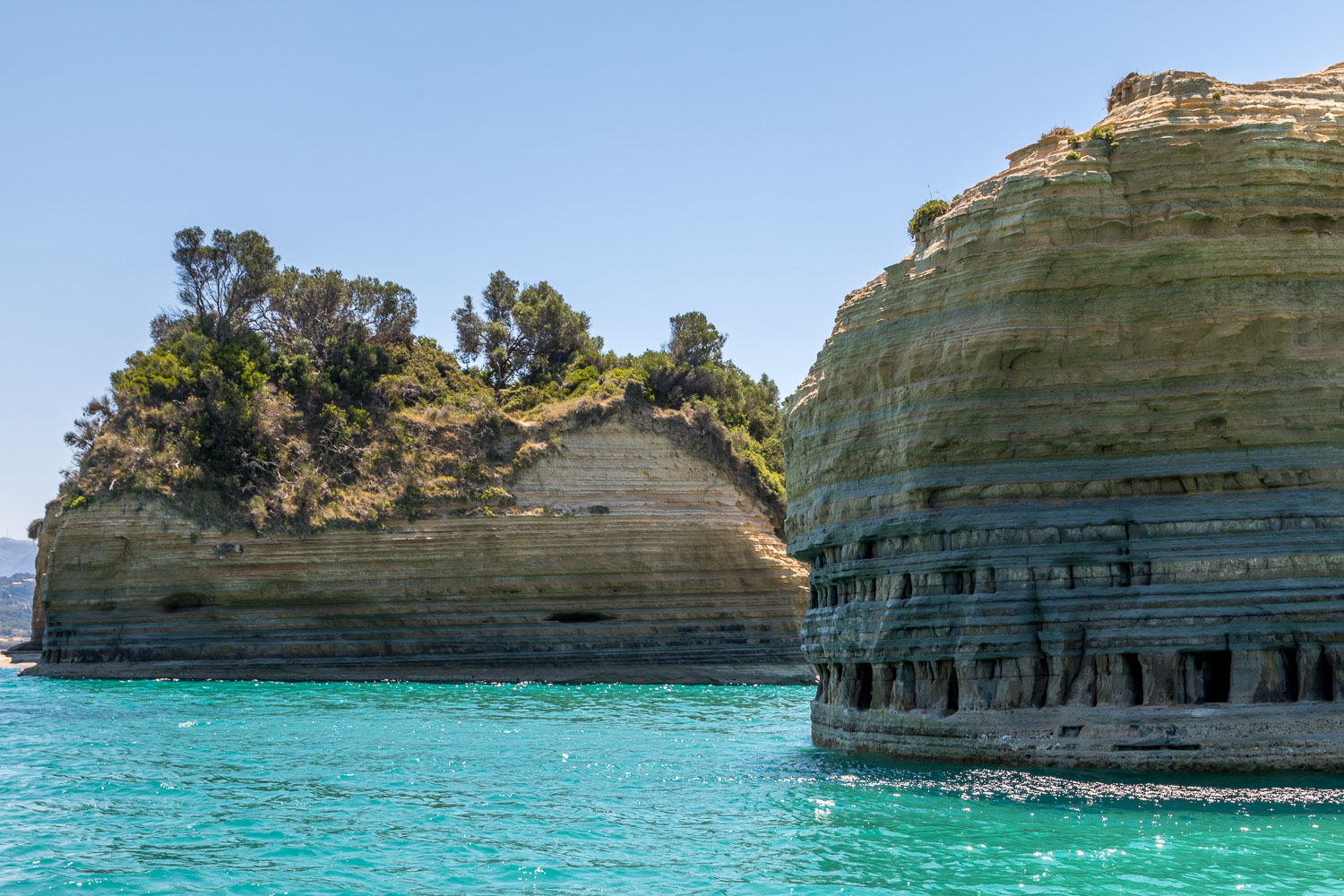 Corfu Mountains & Nature - If you're searching for a serene and breathtaking natural landscape, look no further than Cape Drastis in Corfu, Greece. Situated at the northernmost point of the island, Cape Drastis is just 38 km away from Corfu town and can be reached after passing through the lovely village of Peroulades. The impressive geological formations and clear blue waters are truly mesmerizing, especially when the sun casts its warm glow over the cliffs in the late afternoon. Although the route can be a bit challenging, it's well worth the journey either by foot or by Jeep. Alternatively, you can take a boat to the cape and experience the beauty from a different perspective. Don't miss out on the chance to witness the natural wonder that is Cape Drastis in Corfu, Greece.