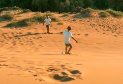 The Sand Dunes in Limnos, Greece can be found on the island's northern coast, just three kilometres from the village of Katalakkos. These remarkable dunes will transport you right to the Sahara desert, the only other desert in Europe. The dunes are constantly shifting and changing shape with the wind, making them a fascinating sight to behold. Accessible only by foot, visitors can make their way to the Sand Dunes from Gomati Beach. Don't miss the chance to marvel at these natural wonders during your trip to Limnos, Greece.