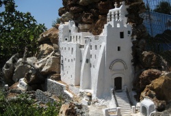Paros Museums - The Cycladic Folklore Museum in Paros, Greece is a must-see attraction just a few meters from Paros airport, located in Aliki. The museum boasts a beautiful garden filled with olive trees, agave, amaranth, and honeysuckle. Benetos Skiadas' unique miniatures of Cycladic tradition are on display, showcasing traditional constructions like gri-gri, drifters, steamers, caiques, sailing vessels, and galleys. Each object is handcrafted to perfection, paying close attention to the smallest detail. Visitors can marvel at the three-masted sailing warship with 12 working cannons, the ancient ship of Kyreni, the shipyard, and the loom that weaves cloth up to 10cm. The museum's yard houses historical replicas like the monastery of Panagia Chozoviotissa in Amorgos, Our Lady of Tinos, the warship "ELLI," the famous lighthouse of Andros, the Venetian Castle of Paros, the cave of Antiparos, the ancient theatre of Milos, the Lions of Delos, and even a Tinian pigeon. Don't miss out on this unforgettable experience at the Cycladic Folklore Museum in Paros, Greece.